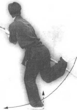 ? (1)接上势,身体右转90。,左脚跟抬 起。同时,两手握棍,使棍把向下沿右腿外 侧向右上挑把。目视棍把(图15-1)。套路动作图解套路动作图解套路动作图解套路动作图解(2) 上动不停,身体左转180。成左弓 步。同时,右手握棍,使棍把向上' 向右 下方拧身压棍;左手握棍,屈肘贴于左御 前,前臂贴棍,程梢斜向左上方。目视前 方(图 15-2)。要点:拧身和压把要机调紧凑,拧腰 转体要两现眼地,身棍合一,力达棍把。图 16-1
