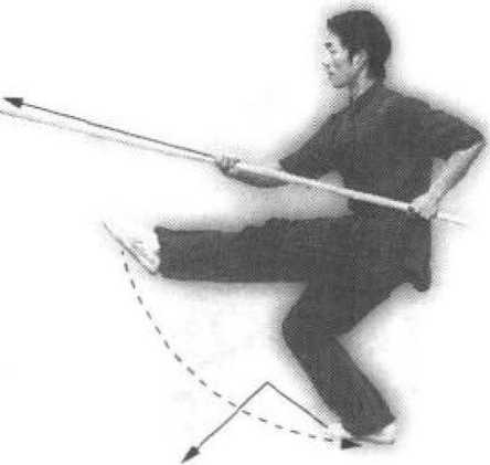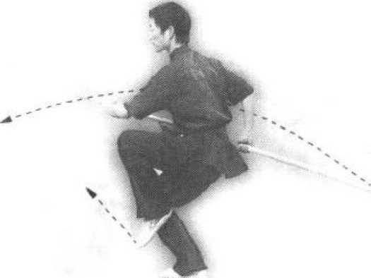 全路动作图解全路动作图解图 28-1图 28-1(1)接上势,右手持棍M使棍把向前、 向后、向右在面前立圆。同时,身体仰卧, 左手阴握棍「使棍身呈水平于胸部上方。目 视上方(图28 -1)。图 28-2「3上动不停,「两根I摆〈图图 28-3(3) 上动不停,两腿同时下摆,成鲤鱼 打挺(图28-3)。图 28-4"(4)上动不停,右腿半蹲落地,左腿屈 膝提起。同时,两手阴手持棍,棍梢向前。 自视前方(图28-4)。图 28-5