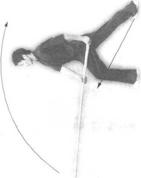 同时「右手滑握棍中段"左手换握棍把,