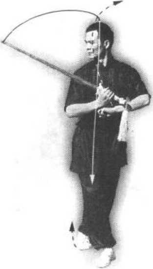 "向里.剑尖向右,剑刃向上;高与肩平,剑身