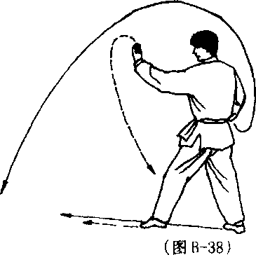 (图 B-37)(图 B-37)要点:左拳小臂屈肘滚压、 右拳冲拳要密切配合,以腰助力。