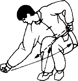(图 RT9)(图 RT9)侧,脚前掌点地,两腿屈膝半蹲, 成丁步;同时,左掌不停,以腕关 节为轴,逆时针划弧缠手,抓握变 拳,屈肘置于左腰间;右拳由后向 上、向前、向下直臂抡劈、砸地, 拳心向里,拳眼斜向前;目视右 拳。(图 B-39)