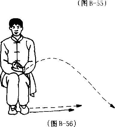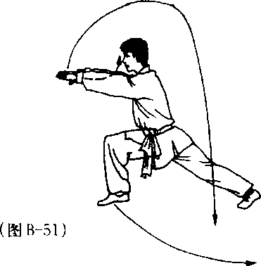 (图 *52)(图 *52)掌心向外,掌指向后;右掌旋臂 转腕向上、向前、向下直臂下劈, 置于两腿前下方,掌心向外,掌 指向下;目视前方。(图B-52)