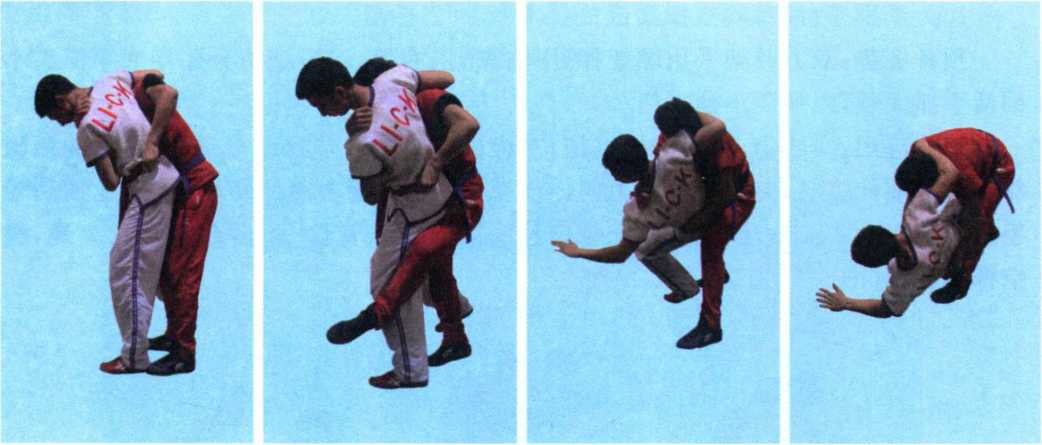 图6-72大领别子(反攻技术扒腰削腿)动作示意图