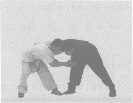 化解与反攻:甲刚一授臂使入时,乙可抢胯、填腰,紧底手使切或别。