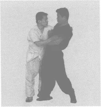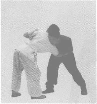 化解与反攻:在甲刚一圈臂时,乙紧底手,滑小步,扒甲腰,挤甲圈臂 之手,形成蹩。