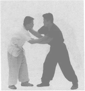 化解与反攻:在甲刚拢臂使入时,乙立即斜胯、掘臂,或扒腰、蹲桩使 吸或判。