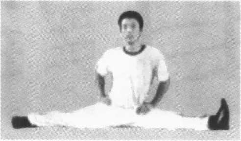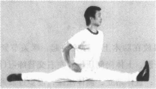 两手在体前扶地或两手侧平举,两腿左右分开成直线,脚 内侧着地(图3-8)。