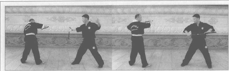 以下是常规下的示范,棍者可以根据自己的特点进行不同的训练,为日后在对抗中 积累宝贵经验,双方队员在教练的口令下进行模拟对练。