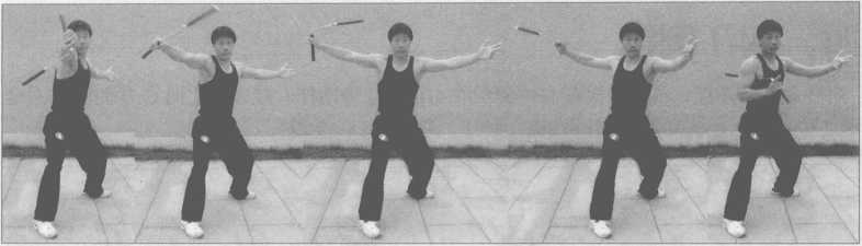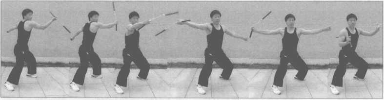 【要 点】左右逢源3势和2势只做一次,动作要连续,在体前将两式动作甩平最佳。
