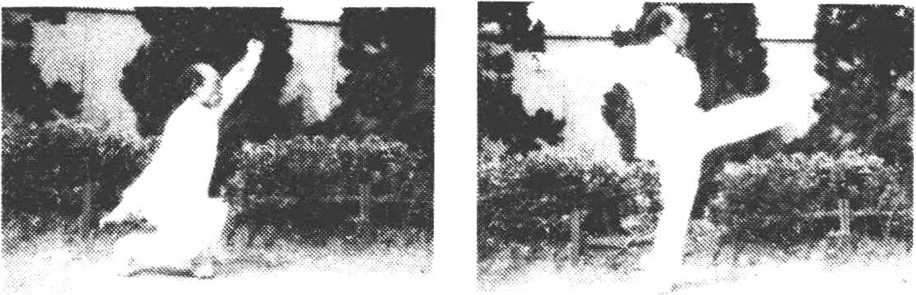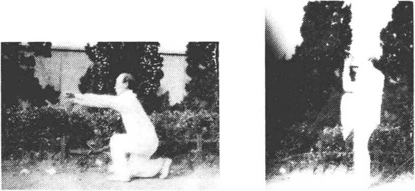 领大蟒扑食 身前跃,左脚前落地,右脚前移,双腿屈膝 132