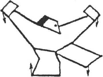 ①撑拳踹腿奔左边 由预备式 起,身体稍蹲,重心后移,两手变拳,拳 背向上。左脚向左微迈步,拳自左右侧 (图1—1),向上崩打,拳高与头齐,同