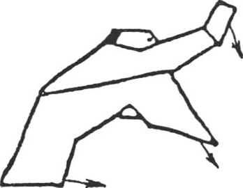 应用:用双掌截劈敌方进攻之臂;同时弹跳前进,用左足 横踹敌腿膝。