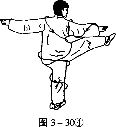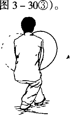 腿而下至左脚大趾端(见图3-30④),左臂缠丝劲起于 左手中指,最终达到右脚大趾端(见图3-30(D)。