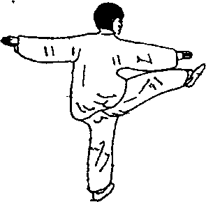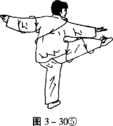 腰劲沉下左腿微屈。)左脚踏实。}腰劲沉下左腿微屈。)左脚踏实。}〔眼神在右手右脚。(右脚尖绷直。(尾闾泛起。〔眼神在右手右脚。(右脚尖绷直。(尾闾泛起。