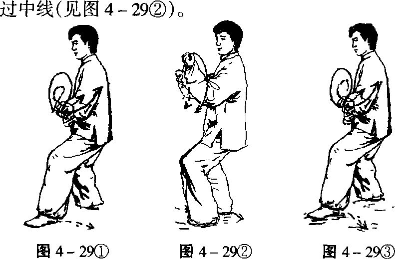 ①右脚后退半步,左脚跟落于右脚边(见图4-29