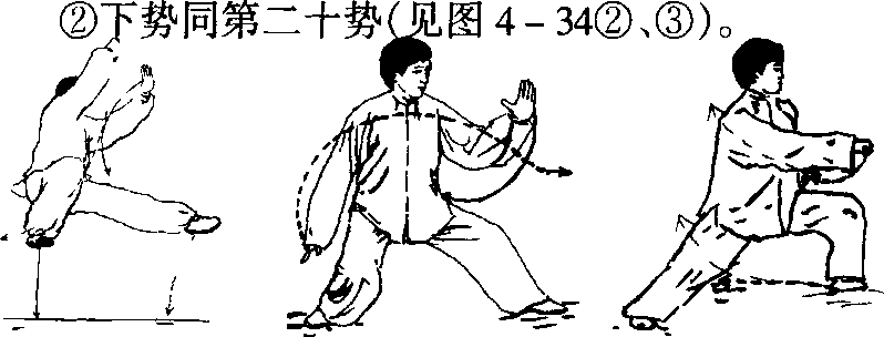 与第二十势相同,惟方向相反(见图4 - 32①、②)。