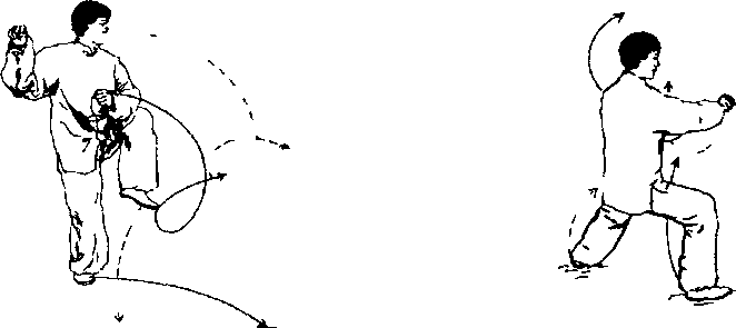 ② 身法迅速右转90。,左脚前扫半圈(见图4-33②)。