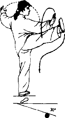 独立时要保持上下垂直一条线,上体不可俯仰歪斜,导致独立不 稳。更不要为追求高蹬脚而上体后仰倾斜。