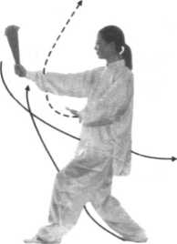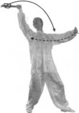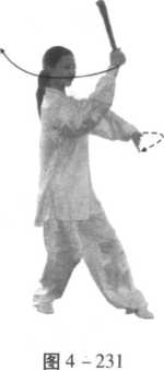 握扇随转身向右斜上方,继续上挑,左臂随之向右移摆,虎口 领先,目视扇器方向(图4 -232)。