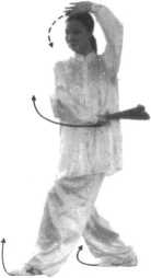 上动不停,身体继续右转90° (胸朝正南),同时,右手