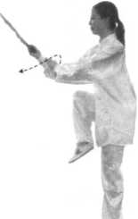 【动作2:提膝云翻扇】