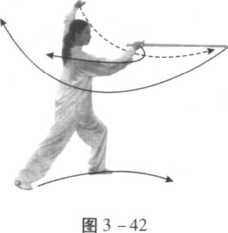 【动作:左弓步拦】(图3-42) 身法:上体先右转,再左转。