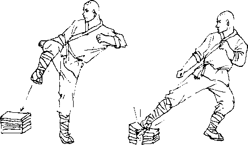 之后,可改练脚踏土块,照例先气沉于丹田,然后发声猛 踏土块,每日400踏。