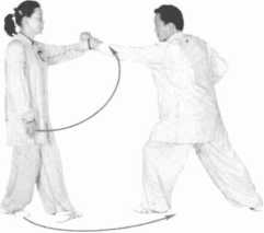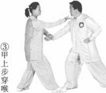 (3) 甲方右脚上步,右手从左手上方仰掌穿击乙方喉部(图2-4-32?)o