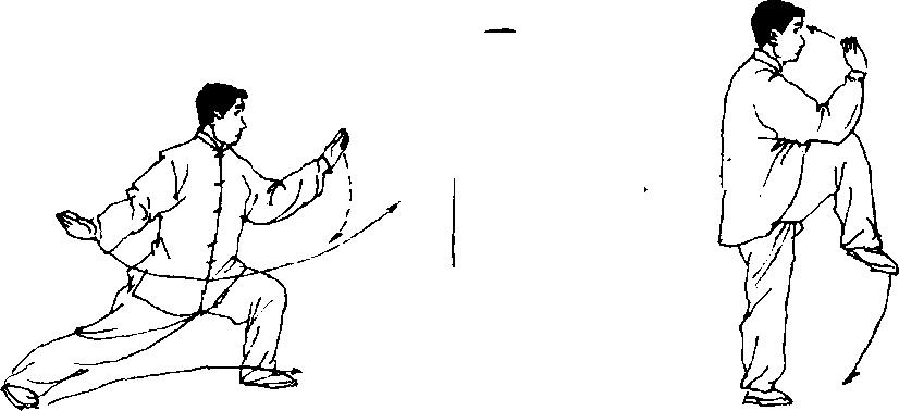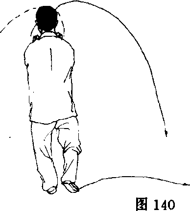 (左腕在下,右腕在上);眼看前方(图140为动作正面,附图为动作 背面)。