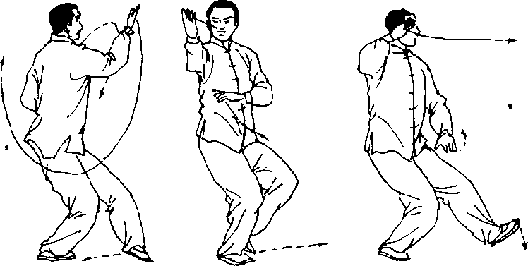 (1)上体微左转;右手随之向左划弧自头前下落;眼视右手(图 26)。