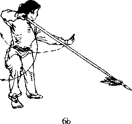 身体右转成右弓步;右手握把屈肘向后拖 枪,左掌向左前方推出;目视左掌前方。(图6 ?6)(刘玉萍)