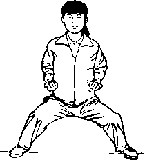 武术主要步型之一。两腿交叉靠拢 全蹲,前脚全脚着地,脚尖外展;后脚脚跟离 地,膝部贴近前腿外侧,臀部外侧紧贴后小足宽,双腿水平如坐鞍,挺胸塌腰向前看,稳如 泰山人难撼。” (叶伟)