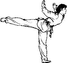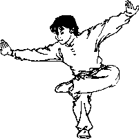 武术俯身平衡动作之一。支撑腿直立站稳,上体前俯略高于水平,挺胸展腹;面绷平或脚尖勾起,踝关节盘放在支撑腿的 大腿上,挺胸塌腰。(章王械)