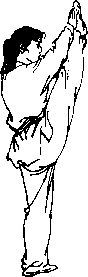 击响性腿法。支撑腿伸直,全脚着地;另一腿脚面绷平向上踢摆,同侧手在额前 迎拍脚面。击拍准确响亮。(李小杰)
