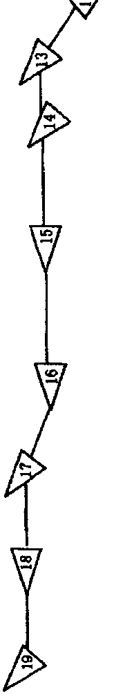 ② 身体继续右转,前 上左脚成半马步,左拳变 掌,由胸前向上、向前、向 下扑掌,掌心向下,高与胸 平;右掌向下、向后收于腹 前,掌心向下。目视左掌 (图 2-39)。