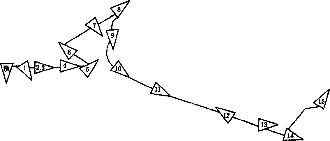 向前下方坐腕塌掌,掌心向下,高与腹平。目视右掌(图2-