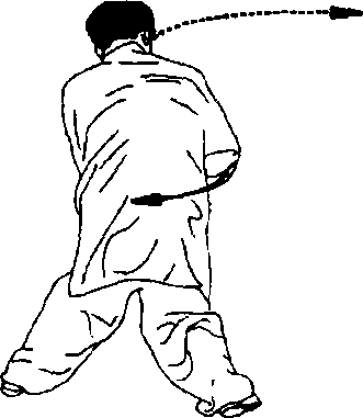 ③ 身体微右转;右臂屈肘, 用肘尖向右顶击,右拳眼斜向 To目视右肘(图2-301)。