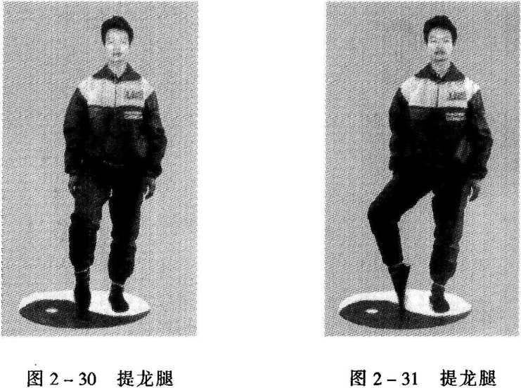 龙吊足”化为“蛇弹”的腿法,此为动功一势,后有站 粧一势为“黄河置足”。
