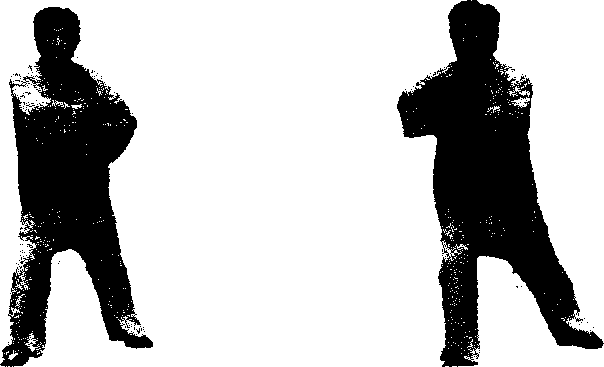 身左侧搌开。这个动势的身姿改换,是由前动作棚而呈“龙 姿,继而“龙”姿转化为“虎”势的动作。