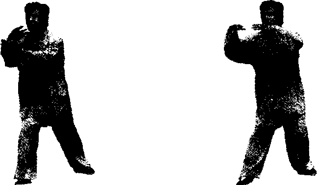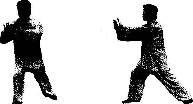 继前动作如(图8-6)。蹬左足,右腿前弓,同时右掌心内