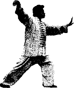 【谱文】内扣右足身左转,横运太极臂左倾Q 易理大象复右环,左收凤足立右踵。