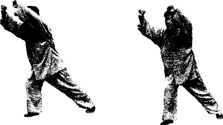 【谱文】回提左足凤点头,两掌前抄斩双锋。