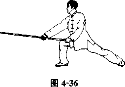 手虎口朝棍梢方向。使棍先抡一圈后再向下劈,动作要快,力 达棍端。身体与棍法配合要协调(图4-34?图4-36)。