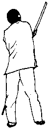 左手握棍的一端,将棍上抛于空中,使 棍身在空中纵翻半周,然后左手迅速接握棍 的另一端。棍身必须在垂直面上翻转半周。 左手接棍要准确,身体姿势、手法与棍法要 互相协调配合(图4-179)。