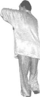 身之后,两脚前后定步,随上身动作,注意重 心前移或后移,使其协调一致。动作熟练之 后,两脚亦可随之移动,如做第三十五式动作 2时,两手经两胯往前托掌时,身体重心移至 左腿,右脚随之跟上半步,身体重心移至右腿 上,左腿亦后移半步成左虚步。接着做第三十 五式动作3中的两拳前击时,左脚又上前半步, 图139
