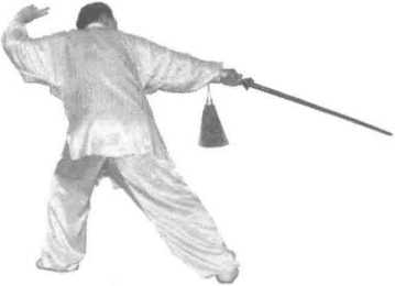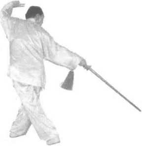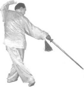 以上三个动作,插步点剑要连续完成,中间不要停顿;插步要尽量远,与 点剑同时完成。