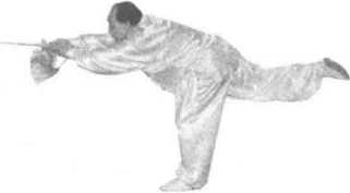 图115图115图114图114右脚抬起在左脚后 震脚下落,左脚立即提 起前落踏实,然后右脚 再向前提起,慢慢向后 蹬平,同时身体前俯接 近水平,两手持剑向前 平刺(图114至图116)。图115图115图114图114图116图116平衡动作尽量做到抬头、挺胸, 右腿尽量上翘,腿不要弯,脚尖绷直; 支撑腿尽量挺直。剑与臂前刺时要求 平直,不可左右歪斜。图116图116