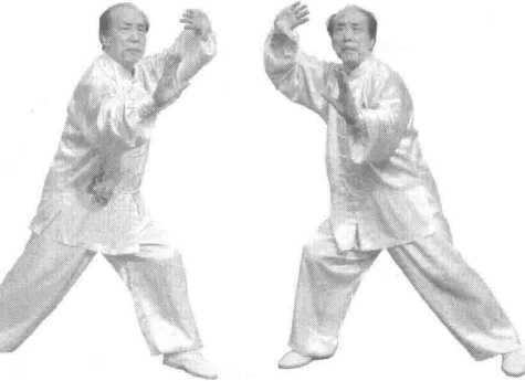 图39图39图40图40图41图41停于右额上方;左手下落经胸前向右前方推击。眼视左手(图38)
