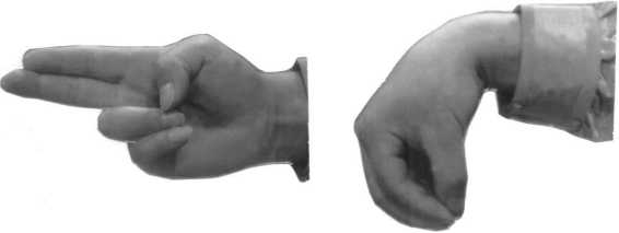 食指、中指挺直夹聚,手腕要直。